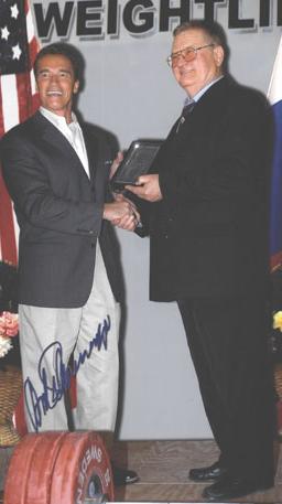 Шварценеггер оказывает теплый дружественный прием своему кумиру