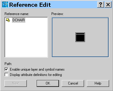 From the Modify pull-down menu select In-place Xref and Block Edit. Interestingly enough, few of us have ever thought to use REFEDIT on blocks, and yet it's mentioned right there in the Modify pull-down menu... but then who has time to sit around and read those menus anyway? Select the block you wish to edit and then you will see the dialog box found in Figure 1.